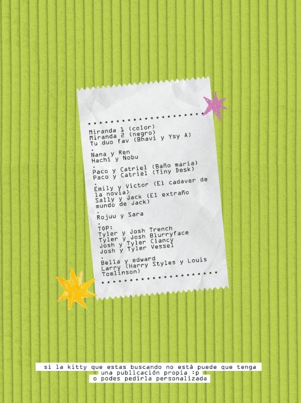 LAS KITTYS DE LA LISTA VIENEN EN LA POSICIÓN QUE TIENEN EN LOS STICKERS PUBLICADOS (algunos modelos dándose un besito, algunos de frente)